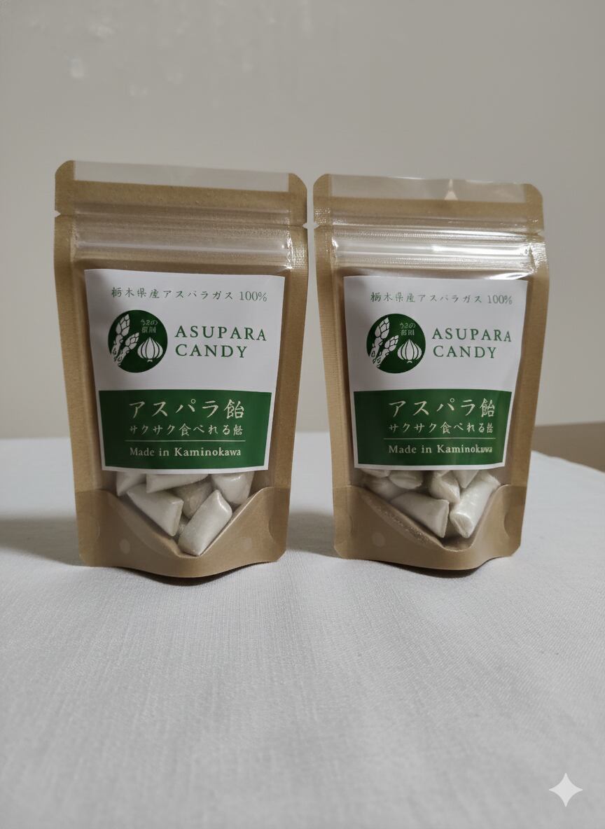 アスパラキャンディは、さくさくとした食感が特徴の美味しい飴です。口に入れた瞬間に広がる甘さの後に、さりげなくアスパラの風味が感じられるユニークな一品です。思わず笑顔になる美味しさをぜひお楽しみください。
